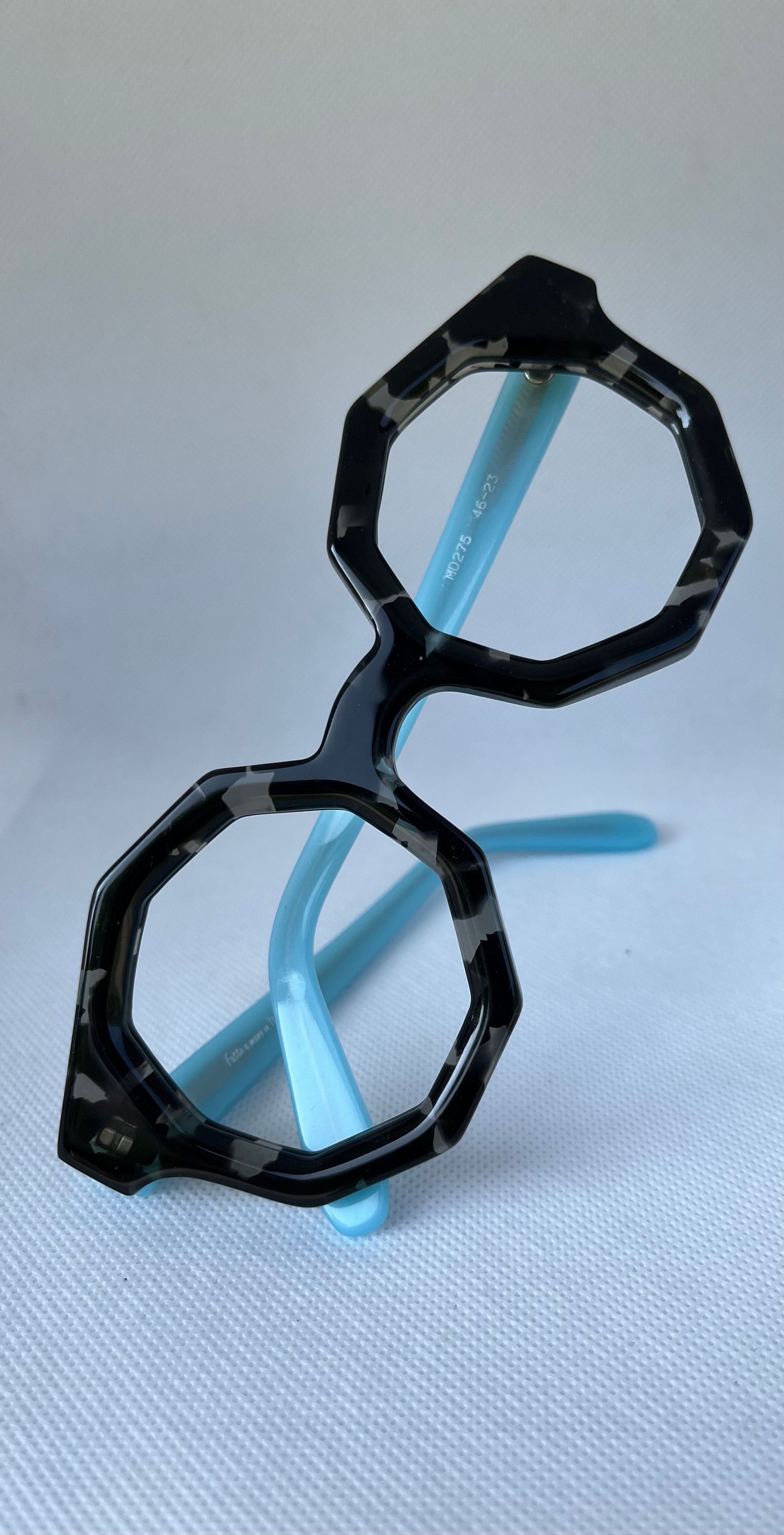Ancora un design ottagonale, ma con la lente rotonda, per la donna che vuole lo spigolo ma ama gli anni '70.